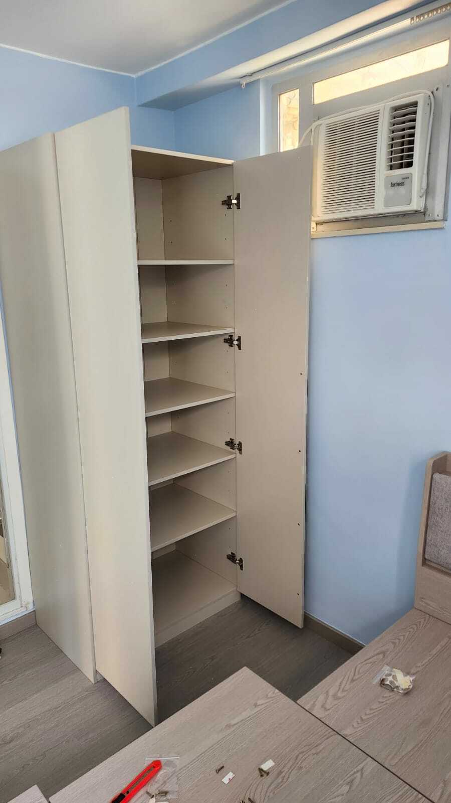| 尺寸(闊x深x高): | 0.6m闊 雙門衣櫃:60 x 55 x 200 cm 0.8m闊 雙門衣櫃:80 x 55 x 200 cm 層板:50 x 77 x 1.5 cm 頂櫃:55 x 80 x 40 cm 衣櫃門手柄位在面向衣櫃的右門 |