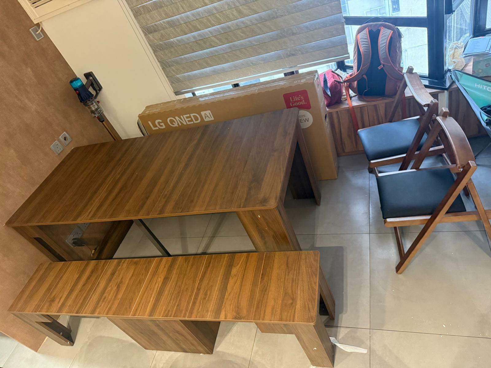 Scapan 0.4至1.8米伸縮桌椅組合 胡桃木色(配伸縮長椅和2張摺椅)