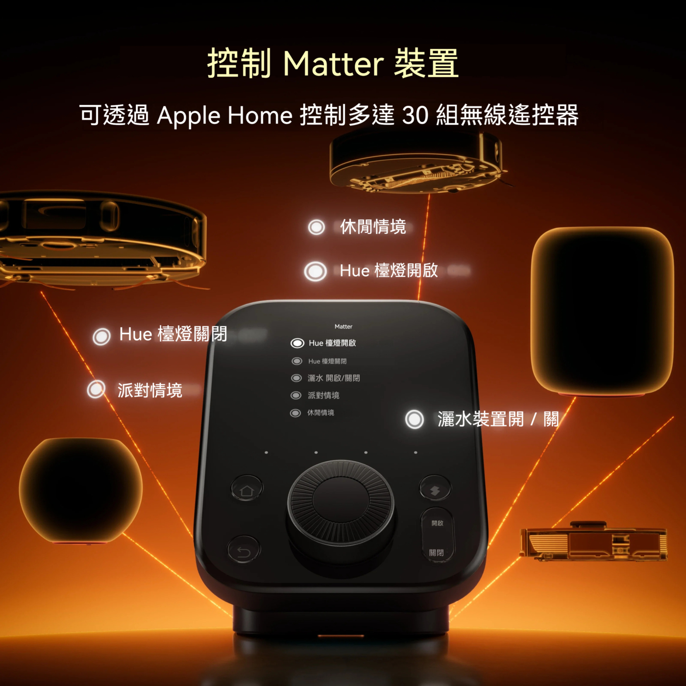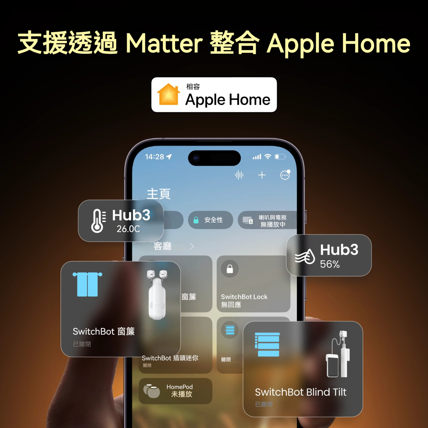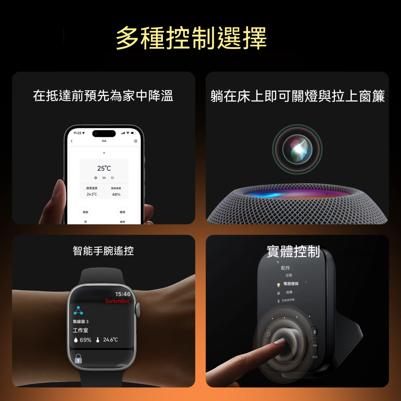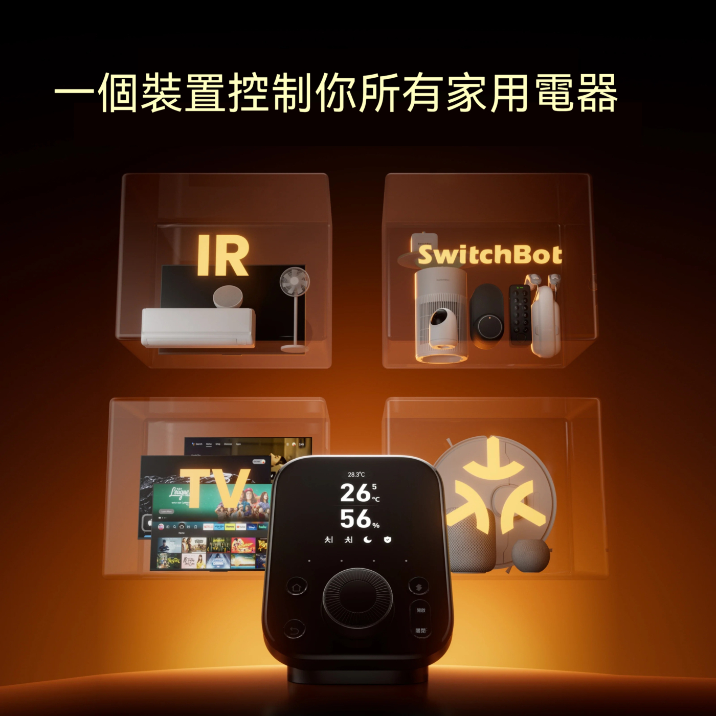 - 全方位控制:支援 10 萬+ 的紅外線設備(空調、燈光、電視)、所有 SwitchBot 裝置及 Matter 相容裝置。