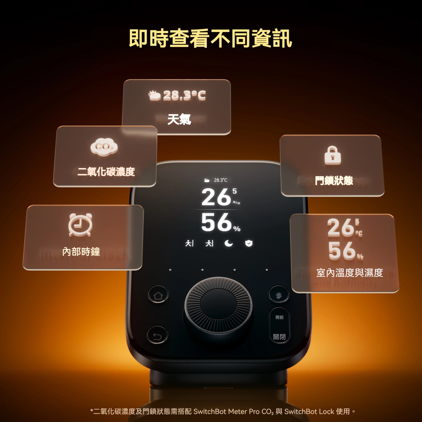 等;具備鬧鐘功能,㇐目了然掌握家中環境 (Lock, Meter Pro CO₂... 需另購)。